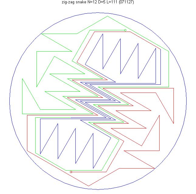 L=111 found by Hugo Pfoertner and Markus Sigg 2009 Apr 30 zigzag mid-snake(1)